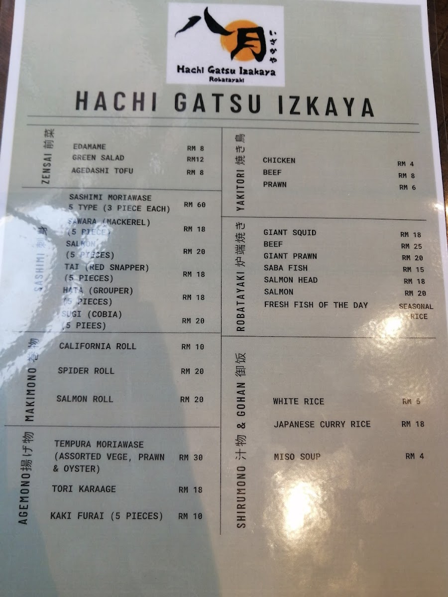Hachi Gatsu Izakaya Royal Langkawi Yacht Club Menu